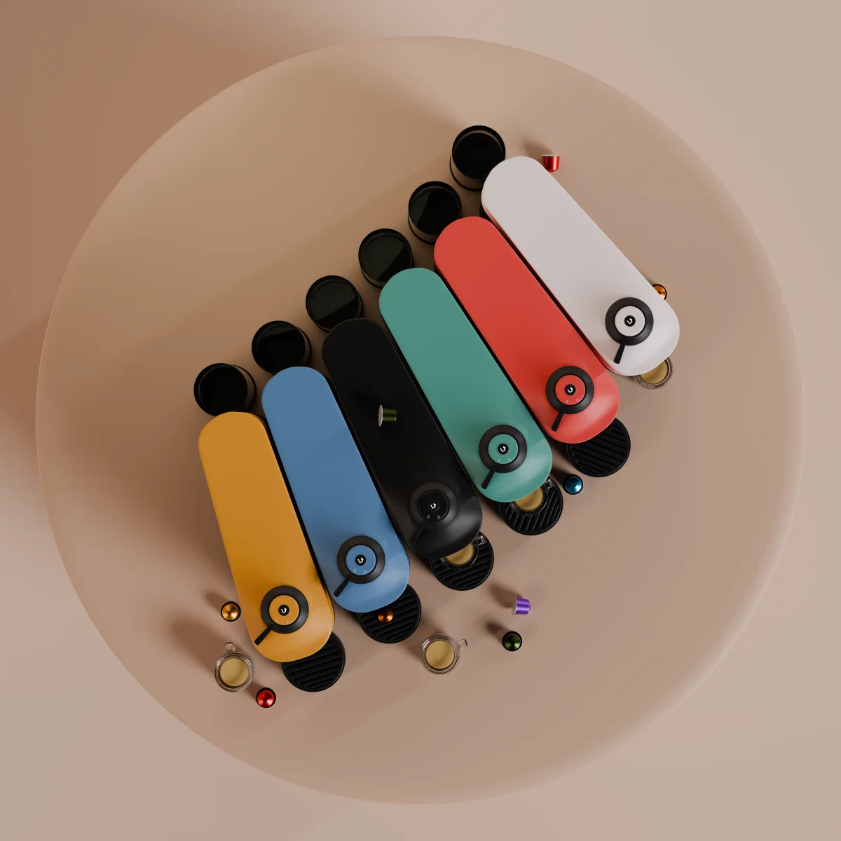 High-detail 3D recreation of the Nespresso Vertuo presented in six color variations. The project emphasizes accurate modeling, realistic materials, and controlled lighting to achieve clean, premium product visuals suitable for commercial use.