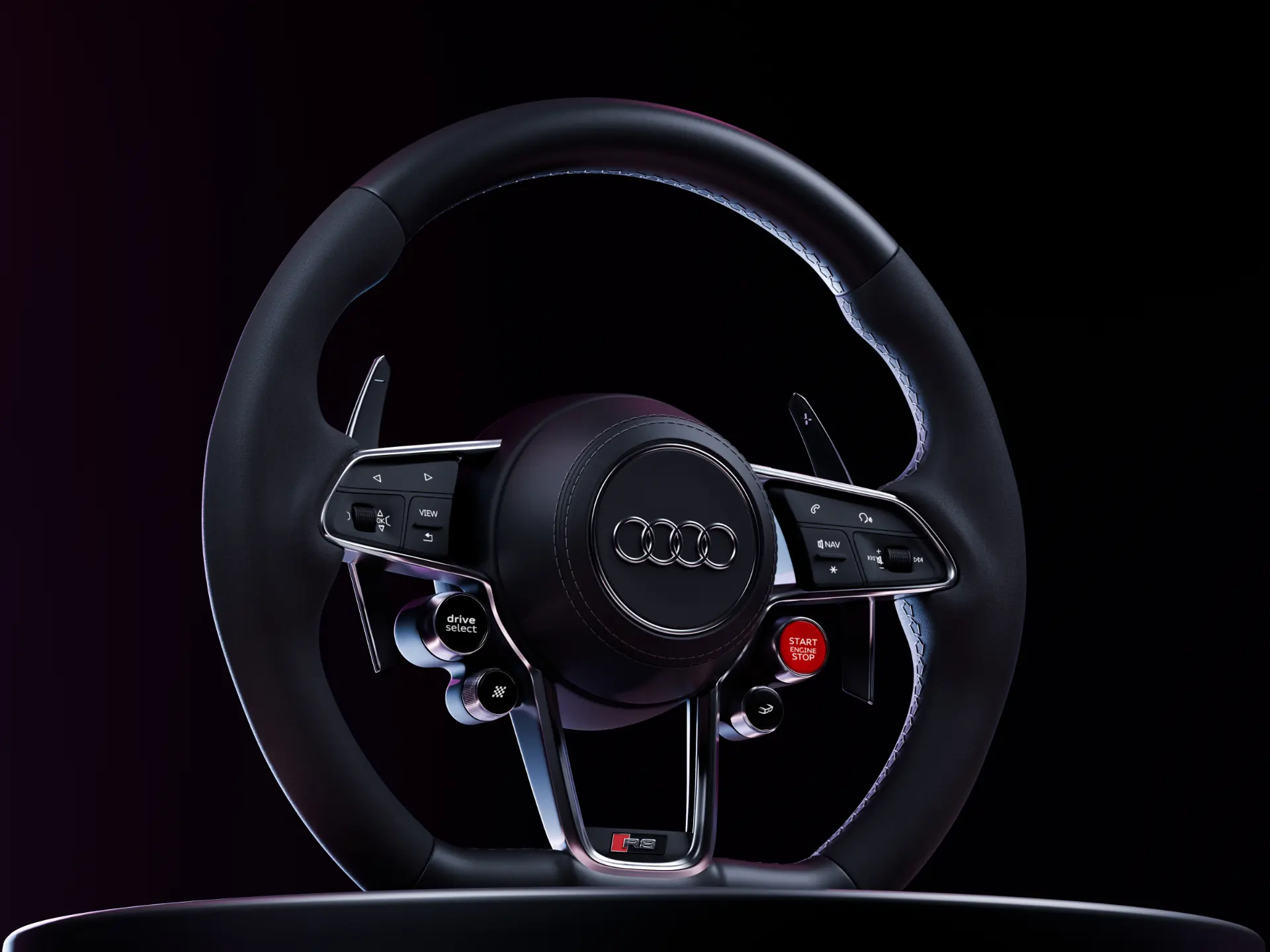 The Audi R8 Steering Wheel is modeled with high attention to detail and precision hard surface techniques. I focused on very accurate proportions, sharp surface transitions, and small mechanical elements to achieve a realistic and production-level result. The materials and lighting were carefully set to highlight textures and metallic finishes for a premium automotive presentation.